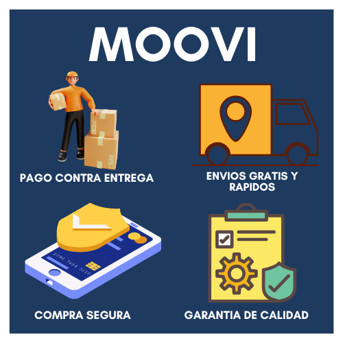 En Moovi, la calidad es nuestra promesa! Nos comprometemos a ofrecerte solo los mejores productos, respaldados por nuestra garantía de calidad. Si no estás completamente satisfecho con tu compra, nuestro equipo estará encantado de ayudarte a resolver cualquier inconveniente